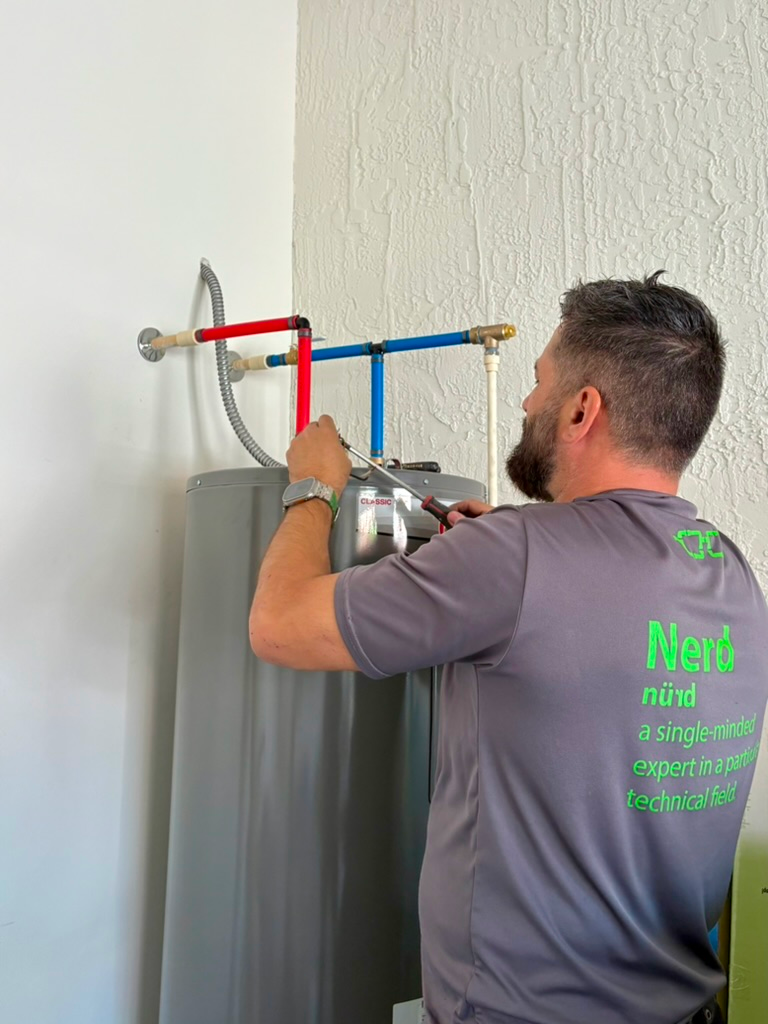 Whether it’s tankless or traditional, we’ve got the schematics. When you need water heater repair & replacement services you can trust, call the Nerds.